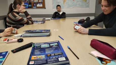Ученики могут выбрать подходящий график занятий – утреннее или вечернее время. Занятия проводятся дважды в неделю по 90 минут. Во взрослой группе обучается не более 8 человек. Группы формируются на основе бесплатного тестирования, определяющего языковой уровень студента.